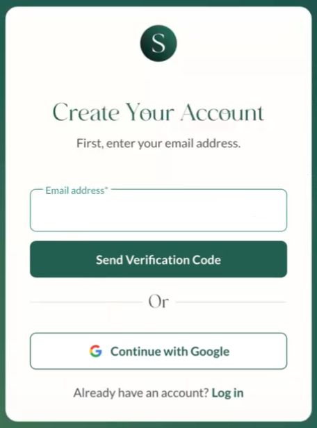 • Next, you have two paths to choose from: Creating your account using your Google credentials, by clicking "Continue with Google," and following the prompts, or be entering your email address in the "Email address" field then clicking "Send Verification Code."